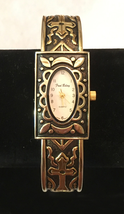 | Pretty Fied Bday Gold Tone Scroll Design Bangle Clip Bangle Bracelet Watch This watch is a very pretty with it's scroll design. It has a white oval face with gold numbers and hands. It clips on and off with a spring clip. The spring clip only springs back on one side. Measure 6.5 long including watch face and 1/2 inch wide. | $15.99 | ![]() | |
